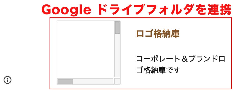 特定の部署やプロジェクトで使用する共有ドライブのフォルダをサイトに埋め込むことで、そこに含まれるファイル一覧をサイト上で直接表示できます。社員はサイトにアクセスするだけで、関連ファイルに素早くたどり着けます。