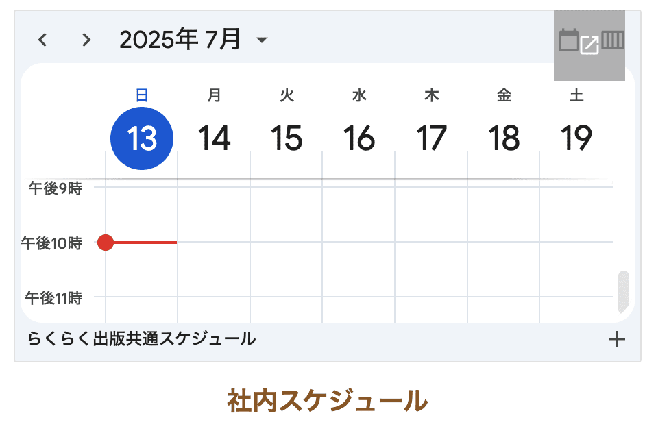社内イベントや会議のスケジュールを Google カレンダーで管理している場合、そのカレンダーをサイトに埋め込むことで、社員は一目で最新の予定を確認できます。全社イベントや部署ごとの共有カレンダーなどを表示するのに便利です。