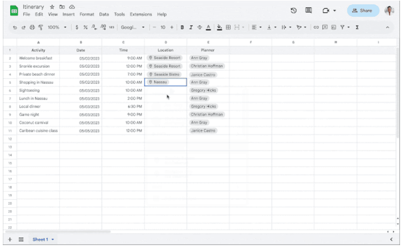 さらに、単なる同時編集だけでなく、 Google ドキュメント、スライドと共通の 「スマートキャンバス」 機能により、共同作業はさらに効率化されます。