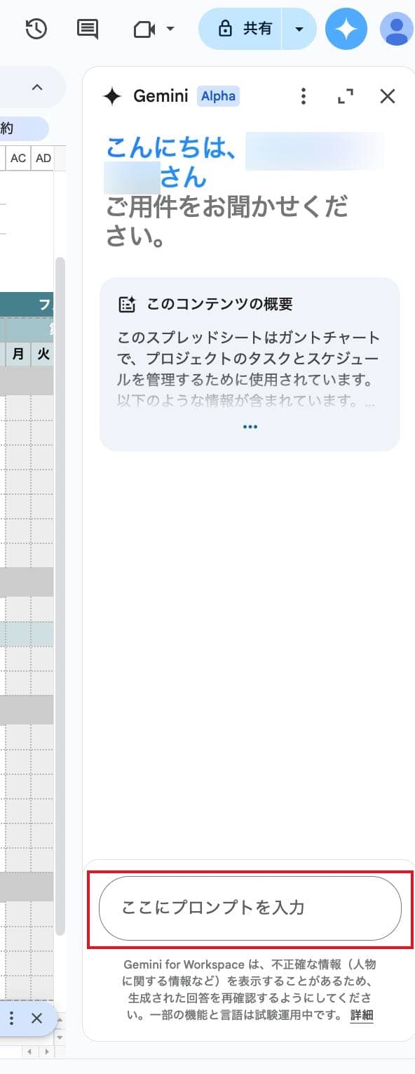 ◆ スプレッドシートの Gemini サイドパネルについて、詳しくはこちら