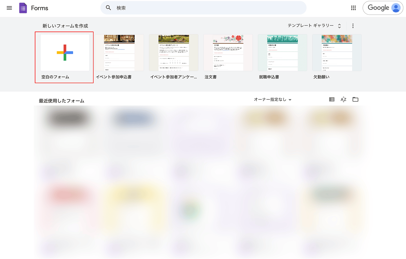 - Google Workspace Business Standard 以上のエディションに加入しているアカウントにログインし、 Google フォーム にアクセスします。