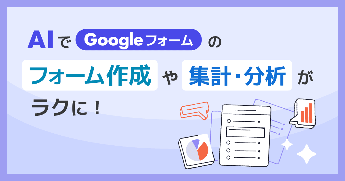 アンケートやイベントの出欠確認、問い合わせ対応など、 Google フォーム はビジネスのあらゆるシーンで欠かせないツールです。しかし、設問の設計や選択肢の作成、そして集まった回答の分析に時間を取られていませんか?