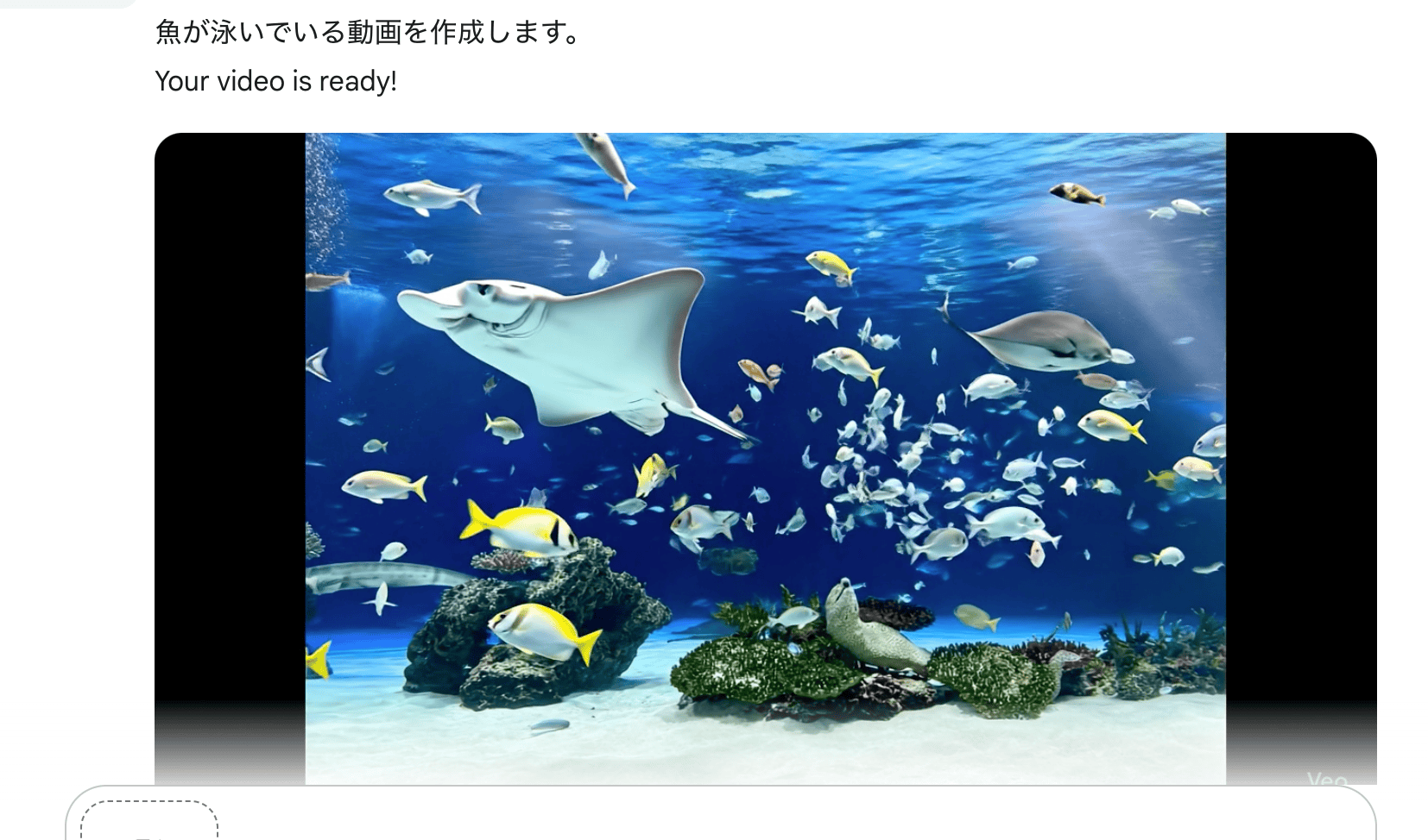 Gemini は動画生成モデル Veo 3 と連携し短い (8秒間) 動画を作成することも可能です。動画を作成するには下記の手順で行ってください。