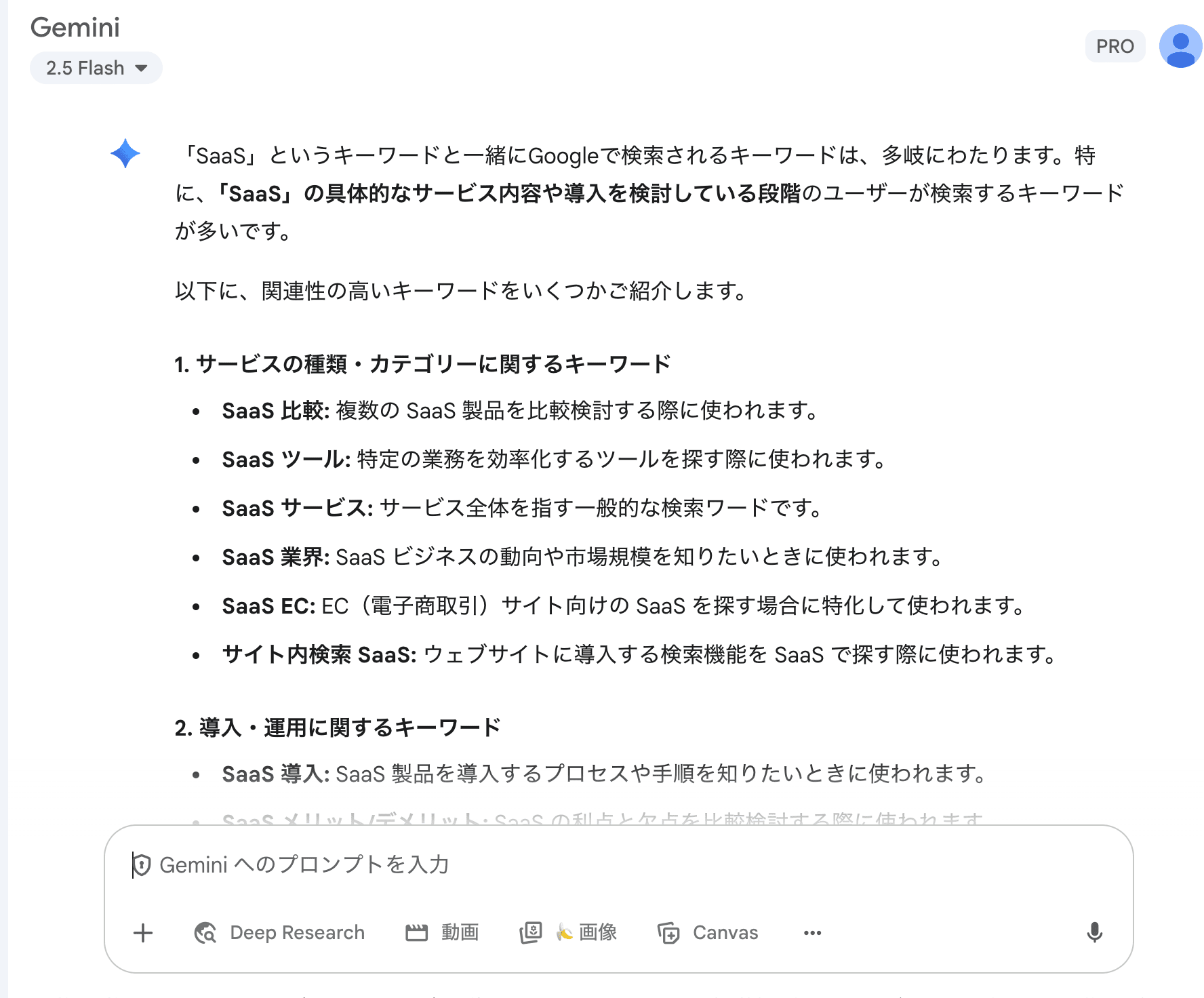 注 : Gemini は必ずしも検索上位に表示されるキーワードを提案してくれるわけではありません。