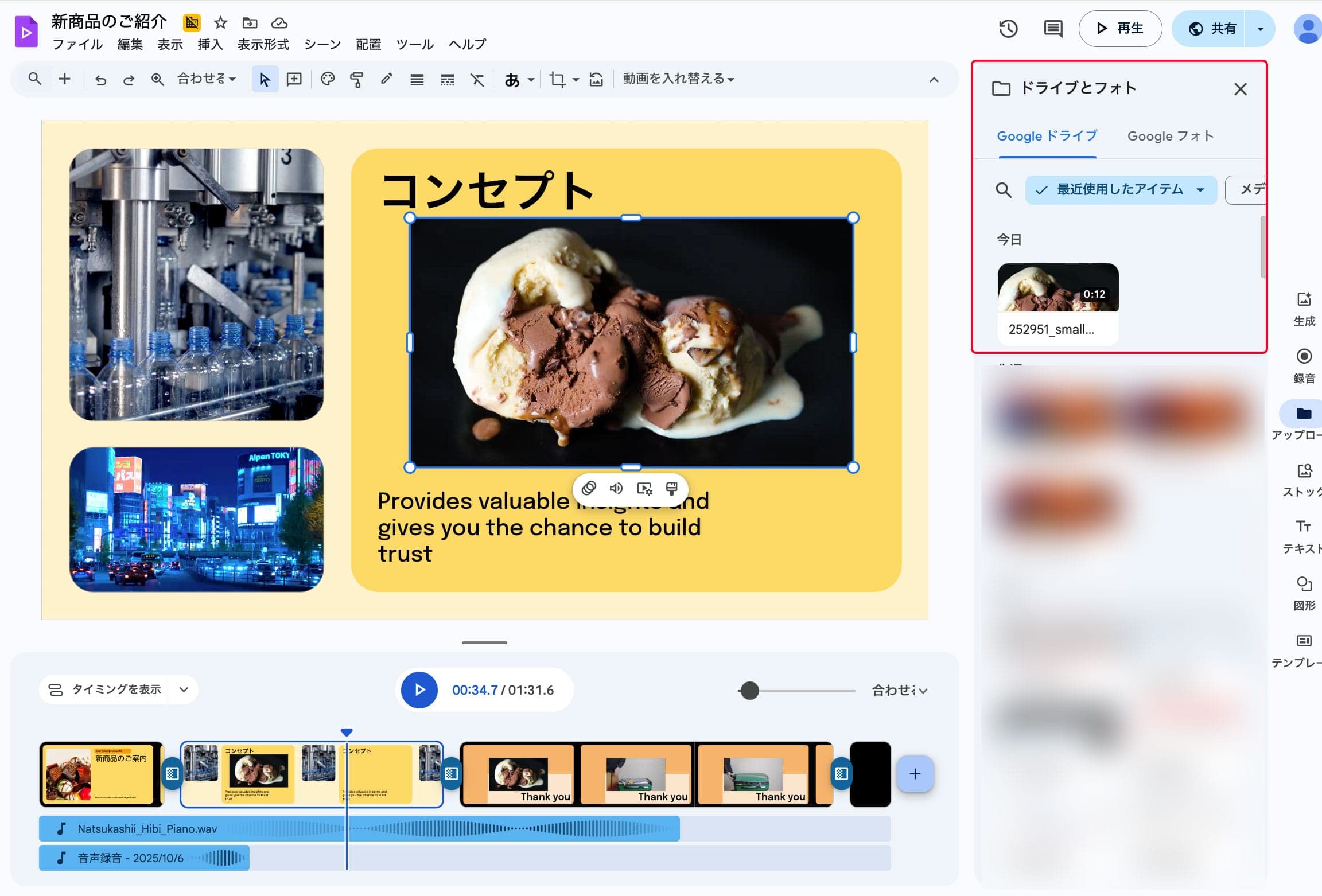 Google スライドで作成した資料を動画に挿入することも可能です。