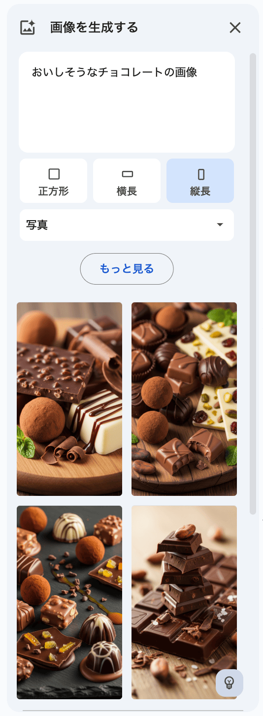 「画像を生成」 を選択すると、プロンプトにより画像が AI 生成されます (日本語利用可能)。