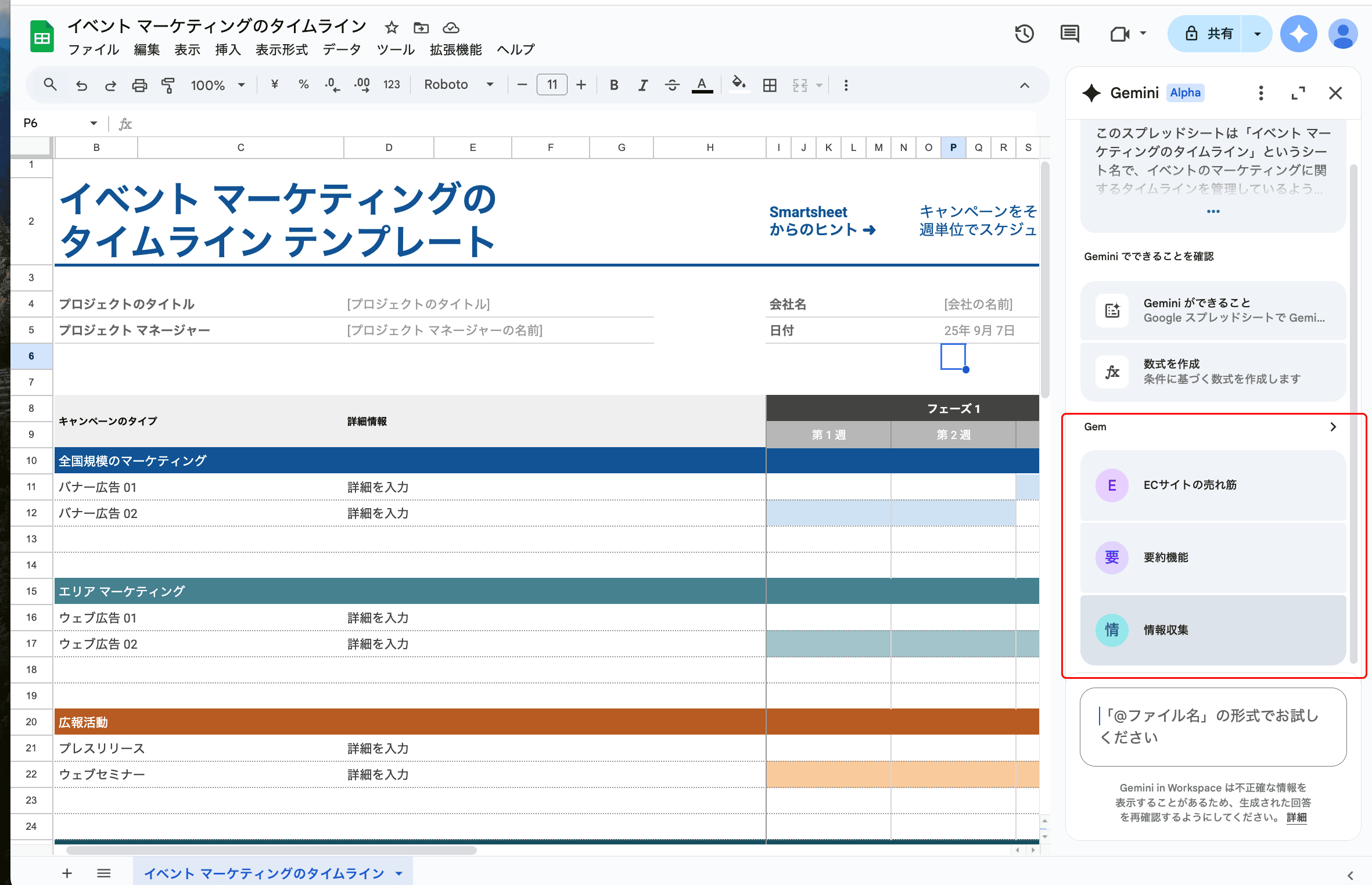 データの分析や洞察の抽出にはある程度の知識や時間が必要でしたが、 Gem を活用することで、スプレッドシートは簡単に扱える強力なデータ分析ツールになります。