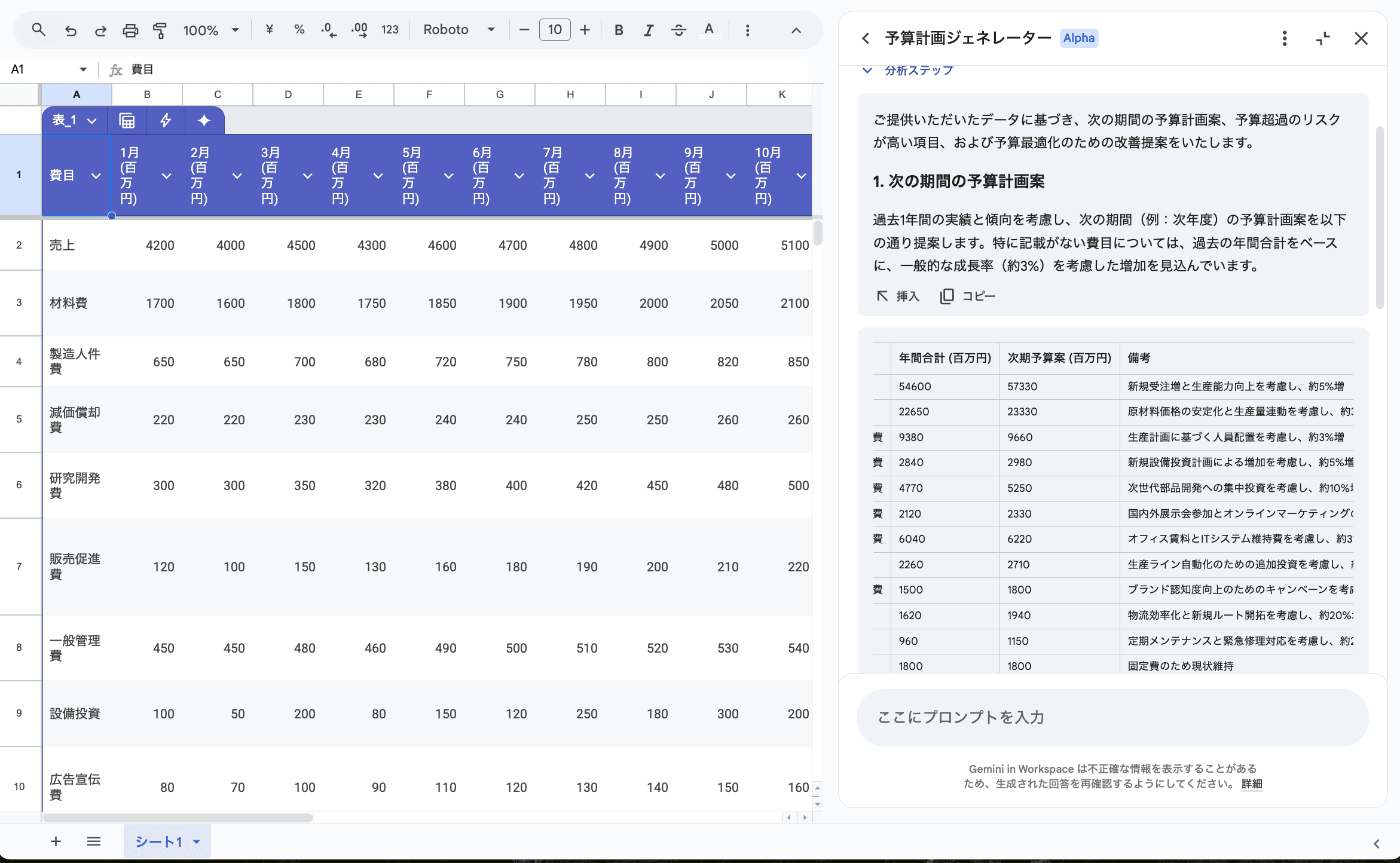過去のデータを基に、次の期間の予算計画を提案してくれます。