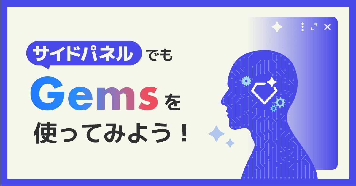 従来、サイドパネルでは AI に対して 「〜について教えて」 「〜を作成して」 といったプロンプトを入力していましたが、 Gem を使えば、より専門的なタスクを自動化できます。