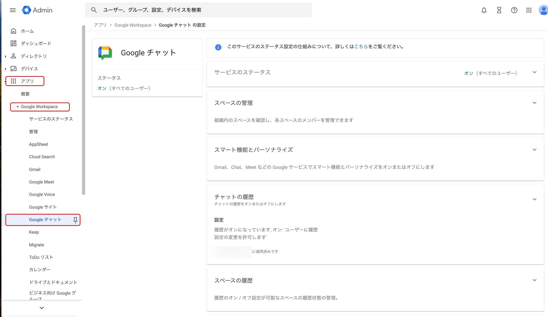 まず、 Google Chat を利用するにあたって Google Workspace 管理者は下記の設定確認を行ってください。適正な設定を行わないと、組織内で Google Chat が使用できない場合があります。