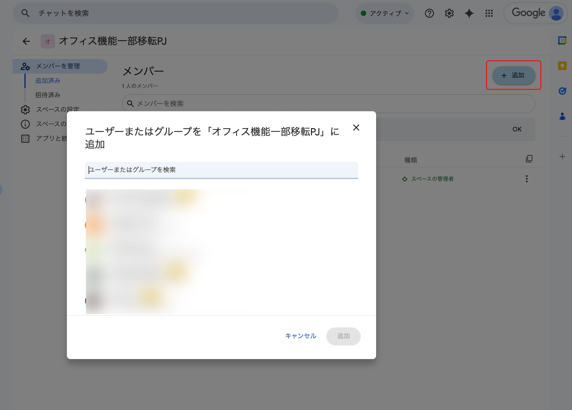 - 「追加」 のボタンをクリックして、メンバーを追加してください。