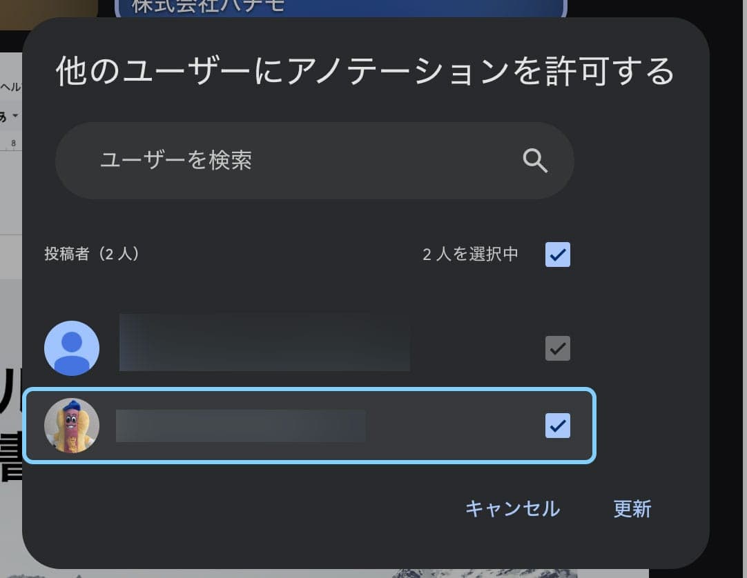 - アノテーションのメニューに表示される 「他のユーザーにアノテーションを許可する」 をクリックします。