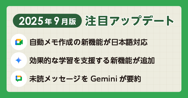 【2025年9月版】Google Workspace 注目アップデート情報