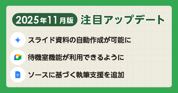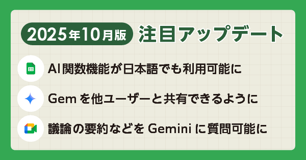 Google Workspace は、Google が提供するビジネス向けクラウドツールです。ここでは新機能や改善された機能といったアップデート情報をまとめてご紹介します。