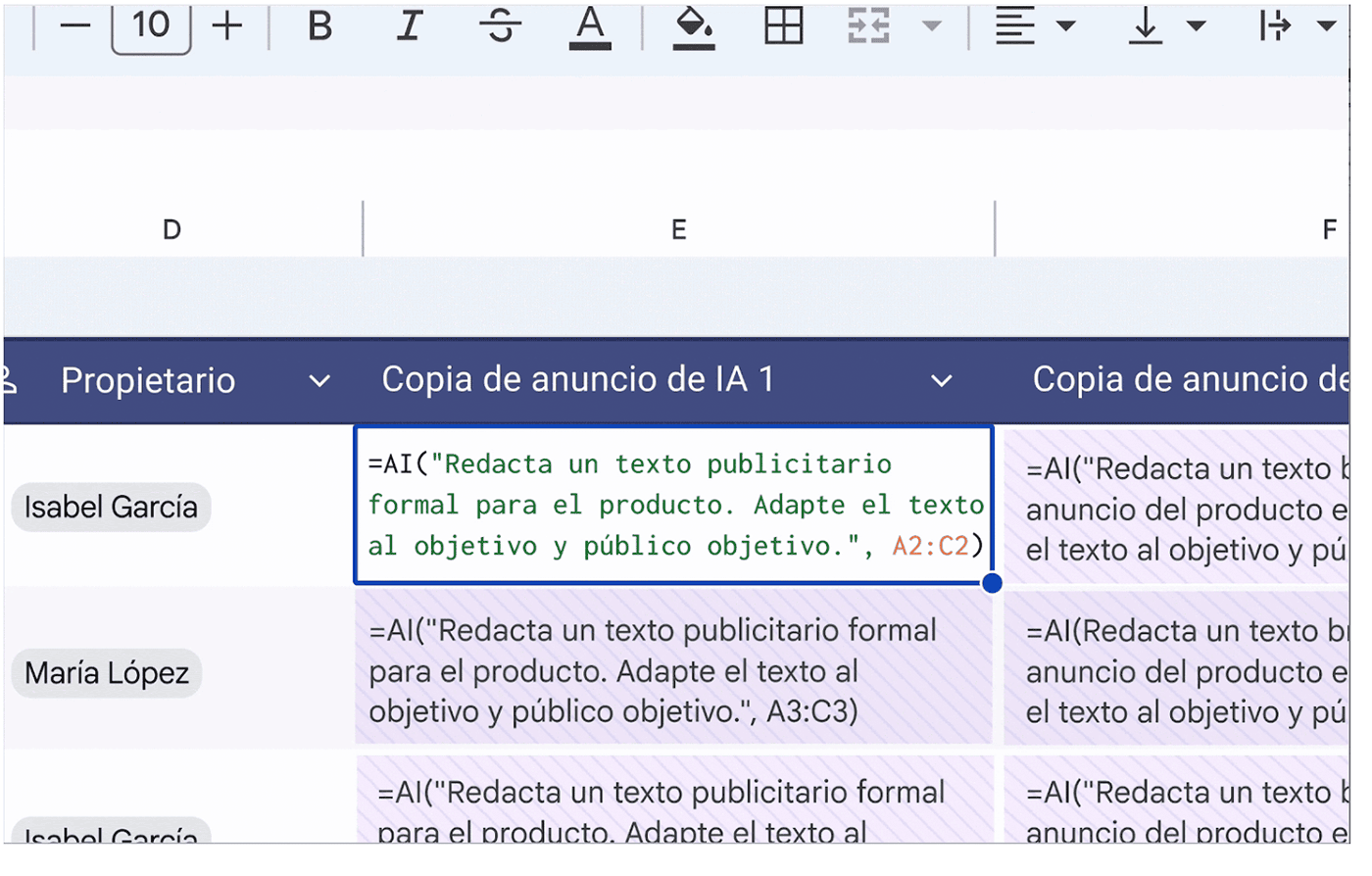 Google スプレッドシートの AI 関数が、スペイン語、ポルトガル語、日本語、韓国語、フランス語、イタリア語、ドイツ語に対応しました。この AI 関数を使うと、 Gemini にテキストの生成、情報の要約、データの分類、感情分析などを大規模に行うよう促すことができ、生成されたコンテンツは選択したセルに直接表示されます。