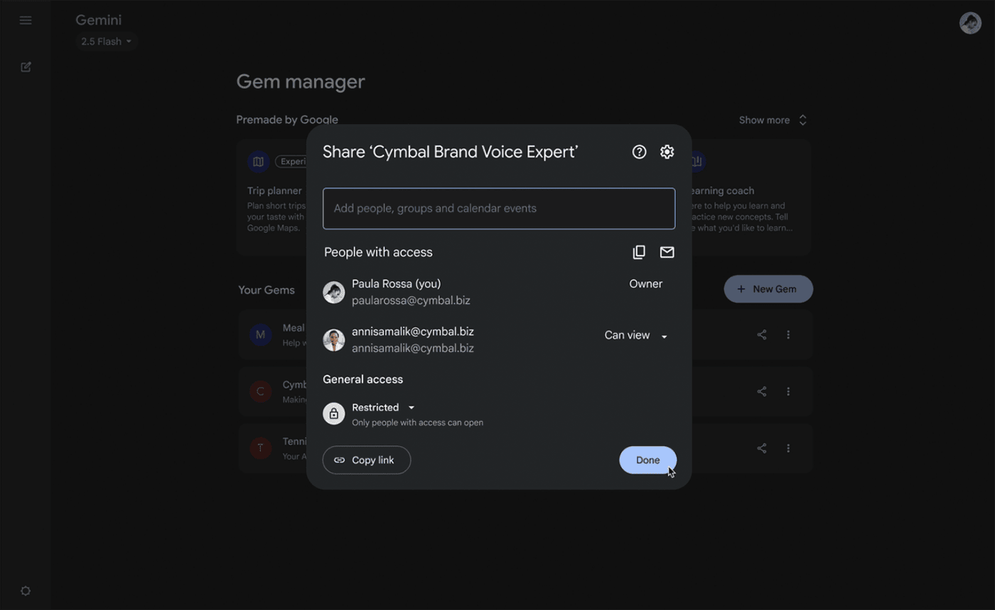 ◆ Introducing Gems sharing in the Gemini app, including admin controls