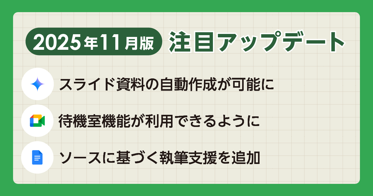 Google Workspace の注目アップデート情報をまとめてご紹介します。