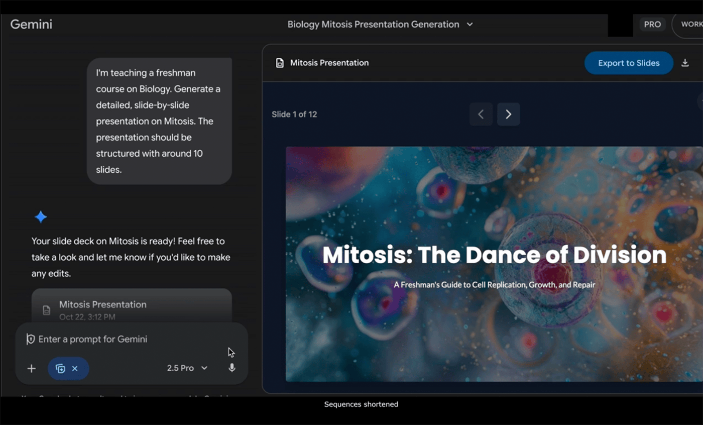 Gemini アプリの 「Canvas」 機能を通じてスライドプレゼンテーションを作成する機能が導入されました。簡単な自然言語のプロンプトをいれたり、またはソースをアップロードするだけでスライドを生成することが可能です。