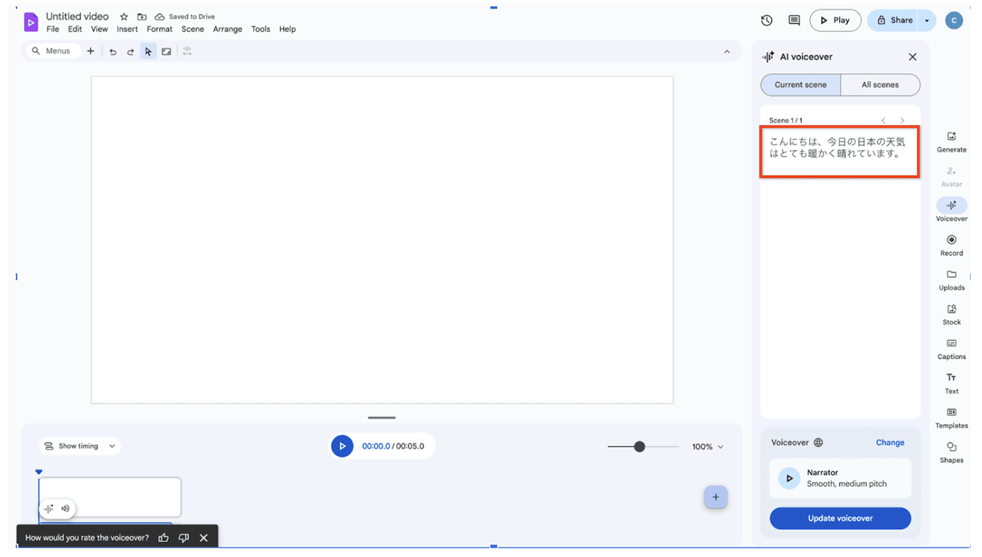 Google Workspace の動画制作ツール Google Vids アプリ の ナレーション機能と AI アバターが、従来の英語に加えて、日本語を含む7つの新言語(日本語、フランス語、ドイツ語、イタリア語、韓国語、ポルトガル語、スペイン語)に対応しました。
