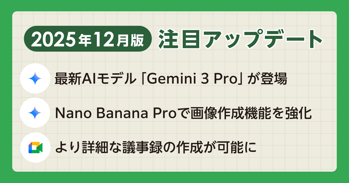 Google Workspace の注目アップデート情報をまとめてご紹介します。