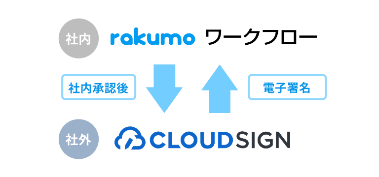 rakumo ワークフロー上で、社内承認から外部企業の契約まで一気通貫で行えます。