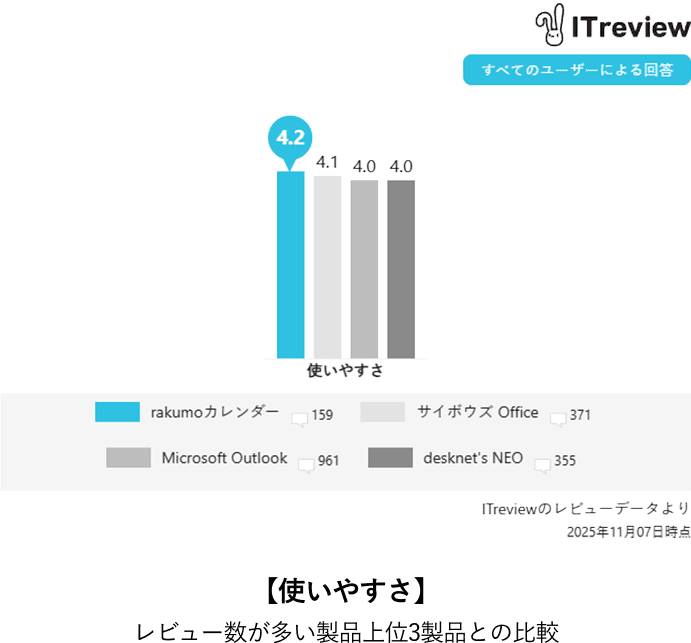 ITreview 内の 「使いやすさ」 の項目では、 「4.2」 の評価をいただきました。