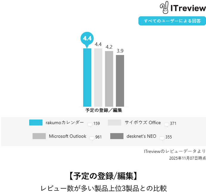 ITreview 内の 「予定の登録/編集」 の項目では、 「4.4」 の評価をいただきました。