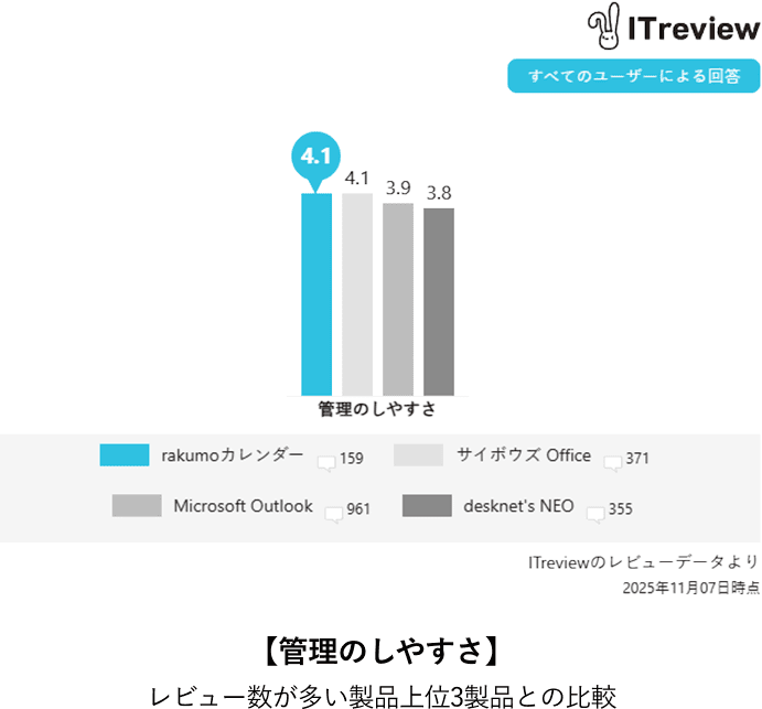 ITreview 内の 「管理のしやすさ」 の項目では、 「4.1」 の評価をいただきました。