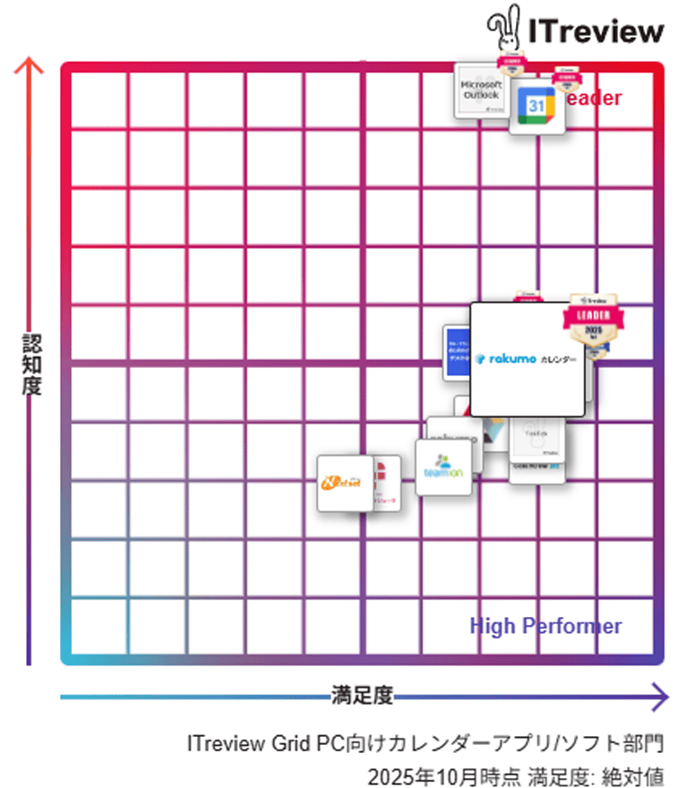 ITreview (国内最大級 IT 製品/ SaaS のレビューサイト) の PC 向けのカレンダーアプリ / ソフト部門で、顧客満足度 ・ 認知度ともに優れた製品に与えられる 「Leader」 を7期連続で受賞しています。